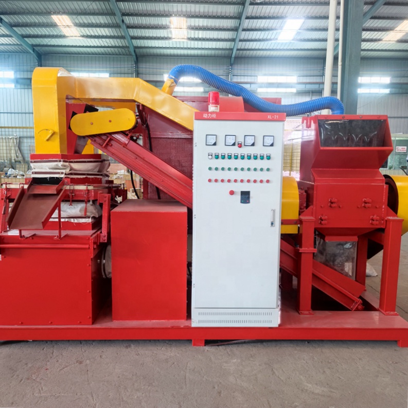 MX-600型一體銅米機是我公司研制成的銅米機成套生產(chǎn)線(主要回收汽車線路線,通訊電纜線,雜線,該設(shè)備采用一體結(jié)構(gòu),節(jié)省空間,工作性能穩(wěn)定可靠。廢舊電線、電纜通過破碎后,成為塑料破碎片和銅米。塑料破碎片與銅米在氣流推吸及篩箱直線激振雙重作用下分離芯皮,使之在篩面波形躍致力前行,將銅米、塑料皮以及銅和塑料的混合物分別從不同的出料口送出,灰塵經(jīng)由風道送到收塵器。